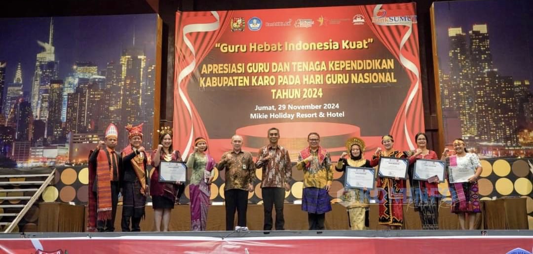 Berastagi,KincirNews.com || Wakil Bupati Karo, Theopilus Ginting, secara resmi membuka acara Apresiasi Guru dan Tenaga Kependidikan dalam rangka memperingati Hari Guru Nasional Tahun 2024, yang berlangsung di Theater Mikie Holiday Berastagi, Jumat (29/11/2024).