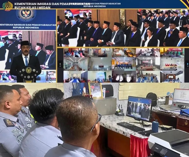 Medan,KincirNews.com || Rumah Tahanan Negara (Rutan) Kelas I Medan menunjukkan komitmennya dalam mendukung reformasi birokrasi dengan mengikuti pelantikan dan pengambilan sumpah jabatan Pimpinan Tinggi (Pimti) Pratama Kementerian Imigrasi dan Pemasyarakatan secara virtual, Selasa (14/01/2025). Kepala Seksi Pelayanan Tahanan (Kasie Yantah), Ronny Steven, bersama pejabat struktural dan staf turut hadir dalam acara tersebut.