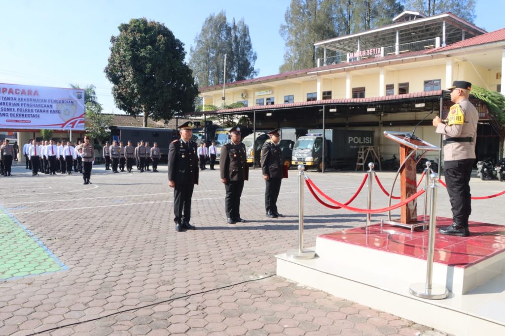 Karo – Polres Tanah Karo menggelar Upacara Penganugerahan Tanda Kehormatan Pengabdian dan Pemberian Penghargaan kepada Personel Berprestasi pada Rabu (11/2/2026) pukul 08.45 WIB di Halaman Apel Mapolres Tanah Karo.